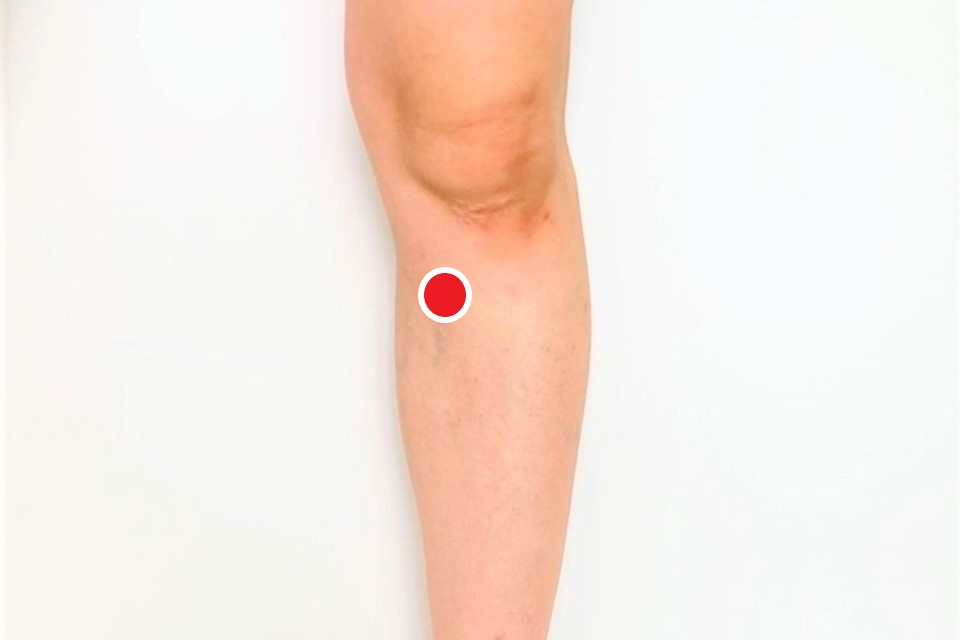 (膝下の凹みから指4本分下がったところ)