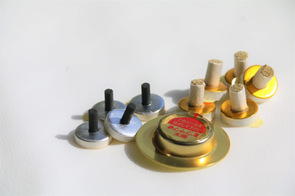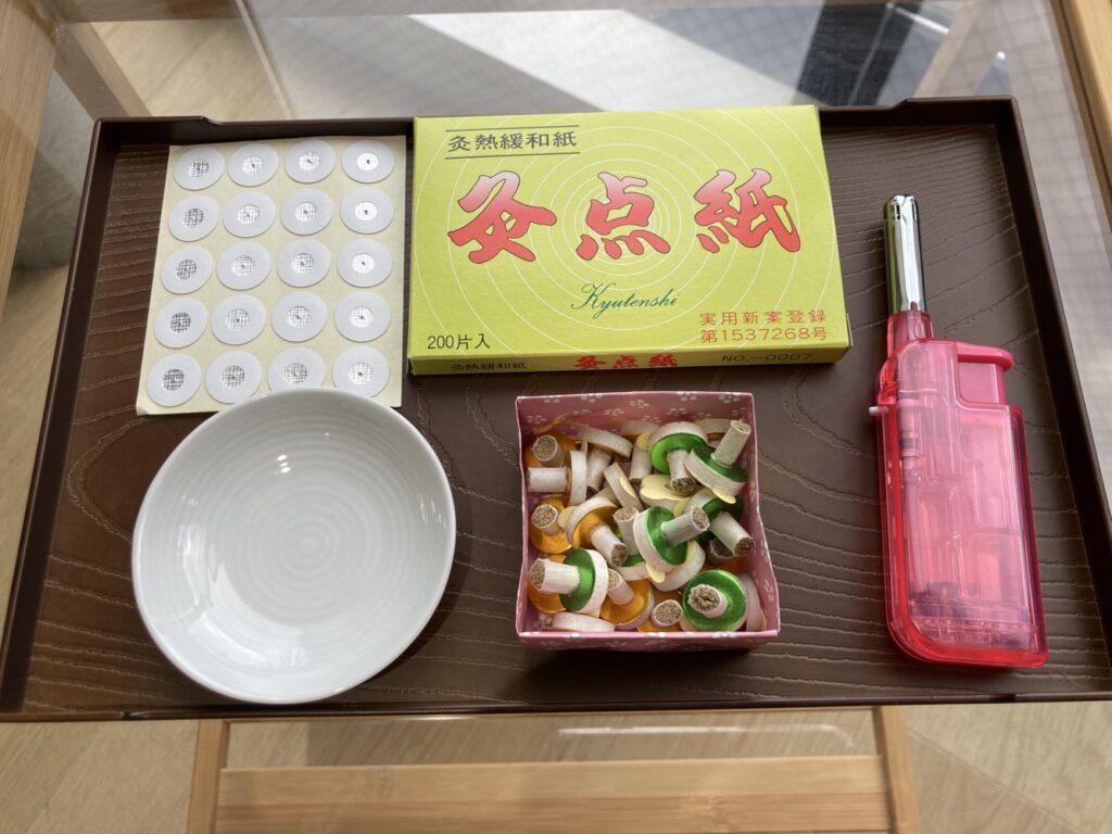 最近は様々な種類のお灸が販売されていますが、初心者の方には、せんねん灸などの台座にシールがついた商品が便利です。